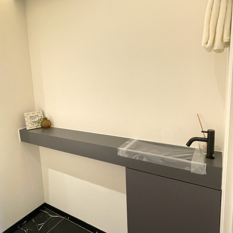 横にものを置けるスタイリッシュなトイレ手洗い