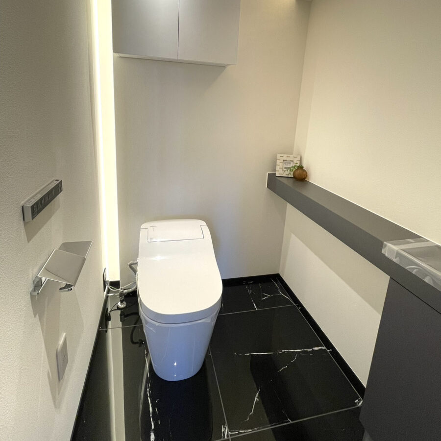 タンクレスのトイレに背面の間接照明で洗練された空間
