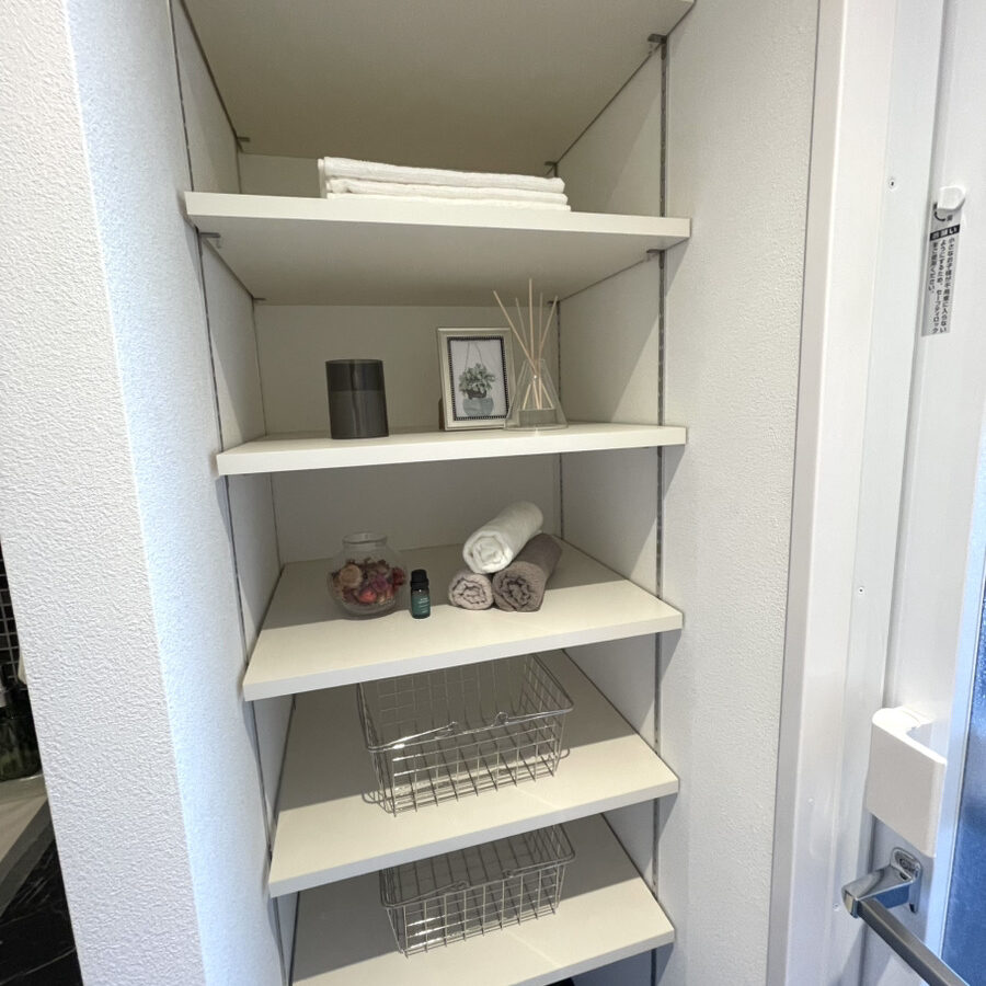 洗面台の横には可動棚