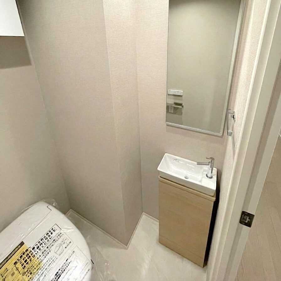 鏡つきのトイレ手洗い